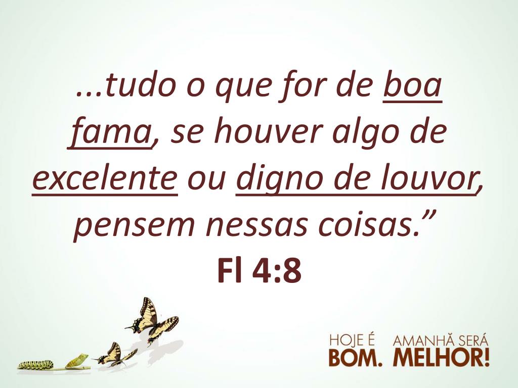 ...tudo o que for de boa fama, se houver algo de excelente ou digno de louvor, pensem nessas coisas.”Fl4:8
