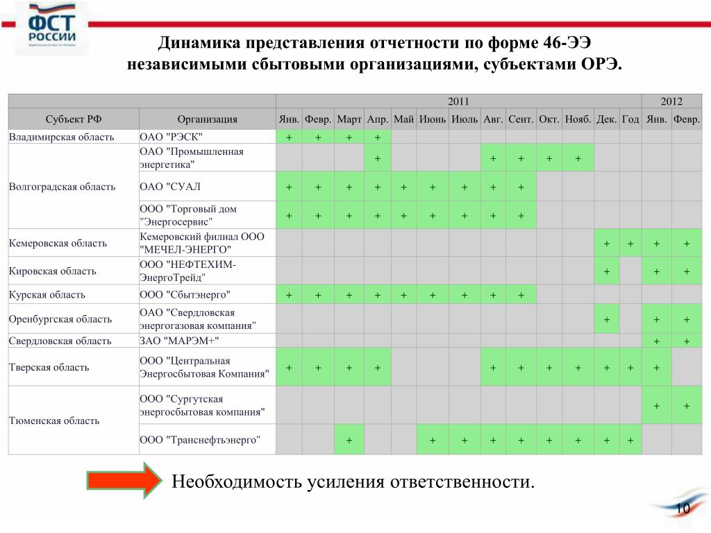 Динамика представления отчетности по форме 46-ЭЭ независимыми сбытовыми организациями, субъектами ОРЭ. Необходимость усиления ответственности.