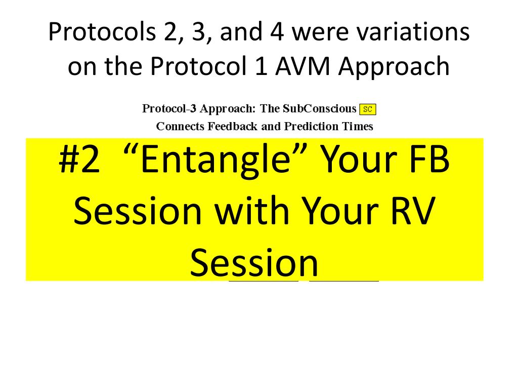 Protocols 2, 3, and 4 were variations on the Protocol 1 AVM Approach #2 “Entangle” Your FB Session with Your RV Session