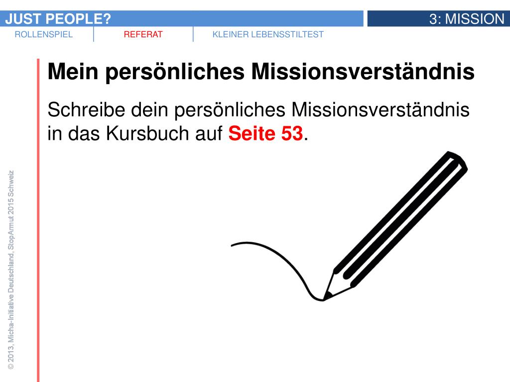Mein persönliches Missionsverständnis • Schreibe dein persönliches Missionsverständnis in das Kursbuch auf Seite 53.