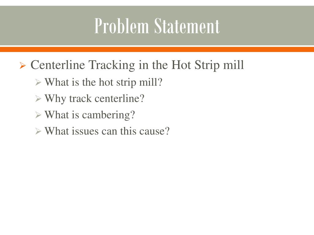 Problem Statement • Centerline Tracking in the Hot Strip mill • What is the hot strip mill? • Why track centerline? • What is cambering? • What issues can this cause?