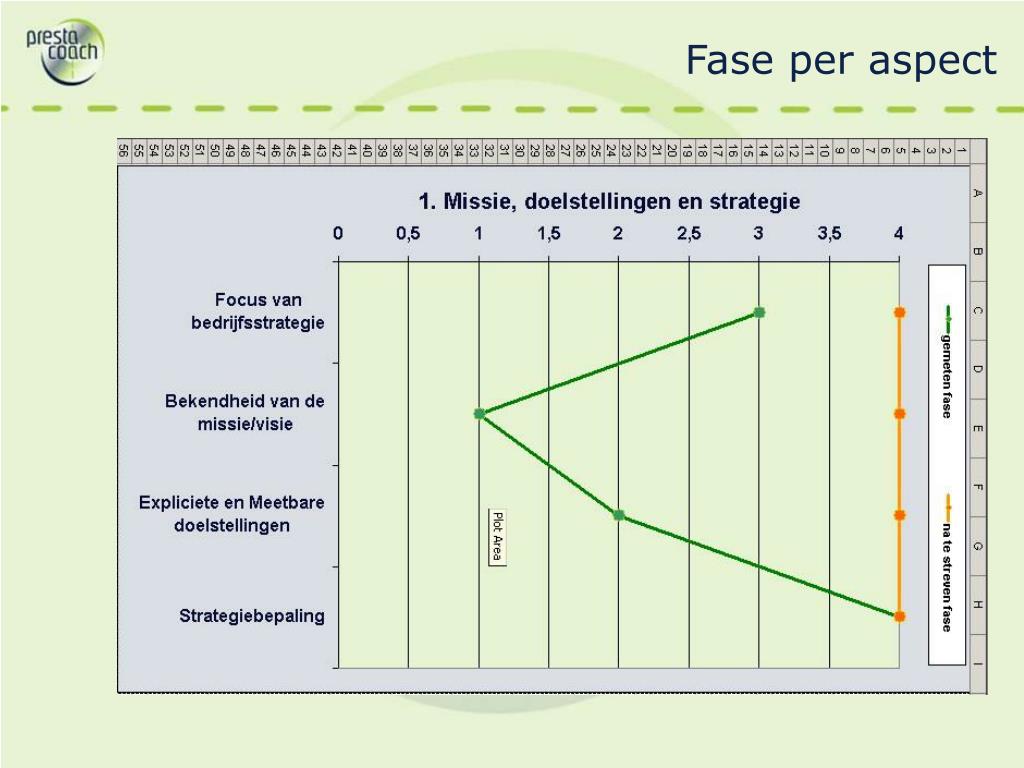 Methodiek van PRESTA-COACH • Het intake gesprek • Het scannen • Het bepalen van de kritische succesfactoren (KSF) en prestatie indicatoren (PI) • Het meten van de PI en het rapporteren via de Balance scorecard (BSC) • Het coachen van de onderneming