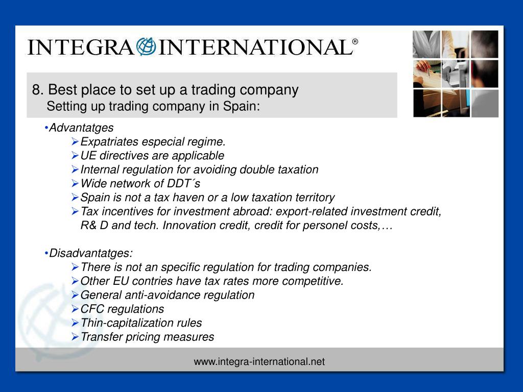 Explore the ideal locations and regulations for establishing trading companies in Spain. This guide addresses common questions about whether Spain is a tax haven, examines key factors influencing location choice, and delves into the complexities of tax treaties, rates, and anti-avoidance regulations. Learn about important rules, such as CFC and thin capitalization regulations, as well as provisions for expatriates. Understand the advantages and disadvantages of setting up in Spain, including labor costs and the bureaucratic timeframe for company establishment.