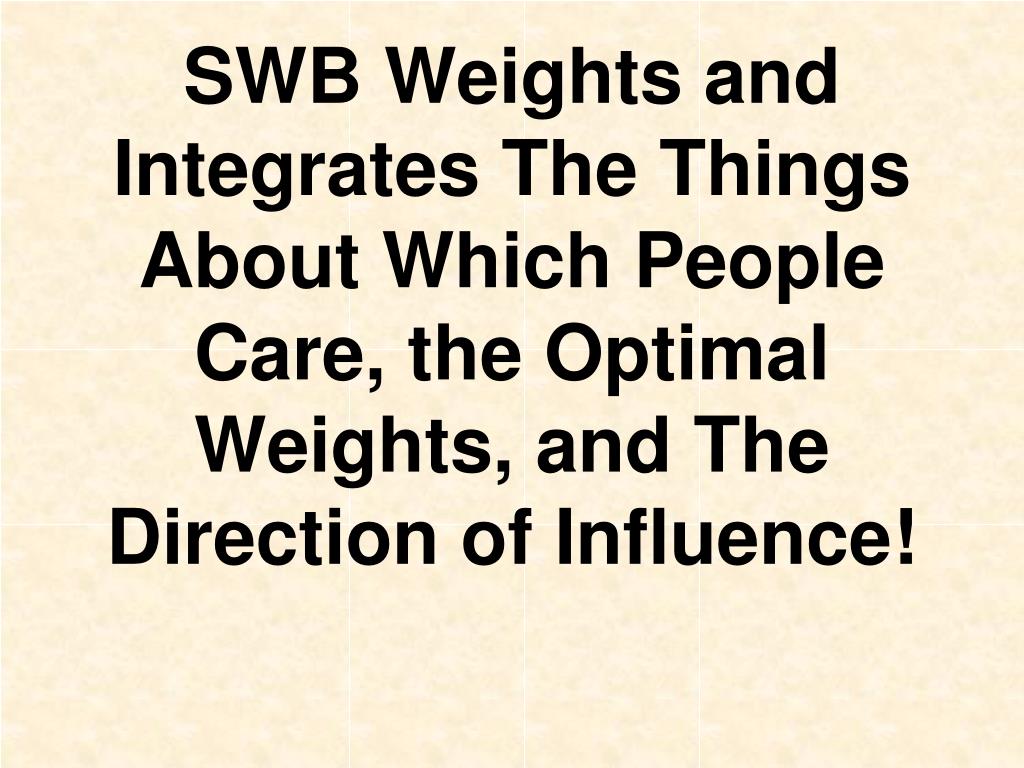 SWB Weights and Integrates The Things About Which People Care, the Optimal Weights, and The Direction of Influence!