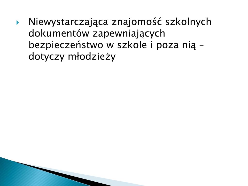 Niewystarczająca znajomość szkolnych dokumentów zapewniających bezpieczeństwo w szkole i poza nią – dotyczy młodzieży