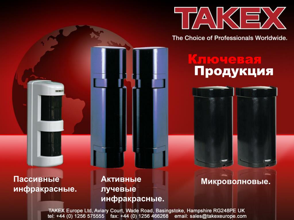 TAKEX кто это ?. 1954 Создание Takenaka Group 1964 Сделан первый лучевой датчик 1984 Появление компании PULNiX * в Америке 1989 Появление компании PULNiX в Европе 2003 Появление всемирного бренда TAKEX * Pulnix – Takex до 2003 г. Охрана периметра. Номер 1 в мире. Ключевая.