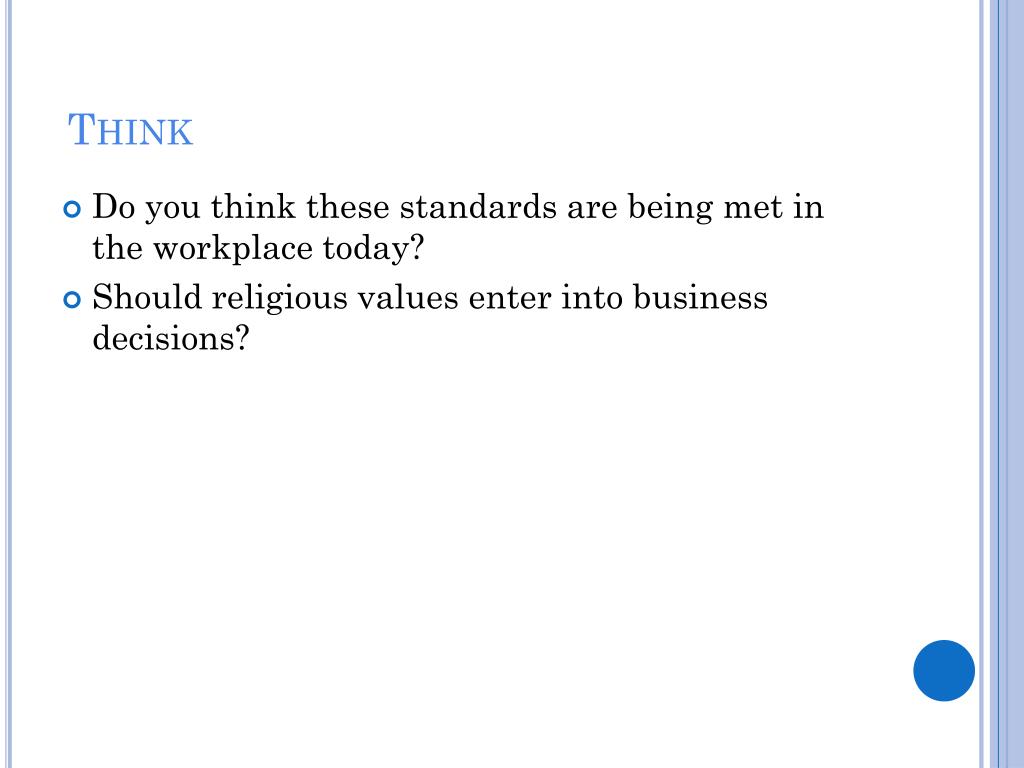 Think • Do you think these standards are being met in the workplace today? • Should religious values enter into business decisions?