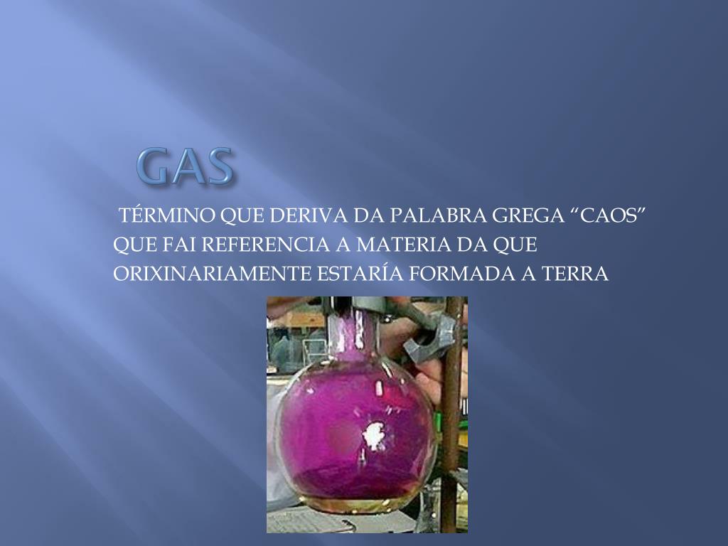GAS TÉRMINO QUE DERIVA DA PALABRA GREGA “CAOS” QUE FAI REFERENCIA A MATERIA DA QUE ORIXINARIAMENTE ESTARÍA FORMADA A TERRA