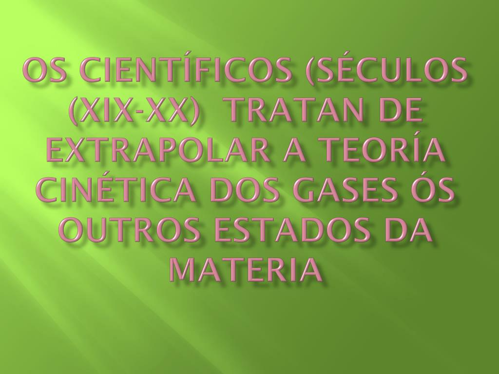 Os científicos (séculos (XIX-XX) tratan de extrapolar a teoría cinética dos gases ós outros estados da materia