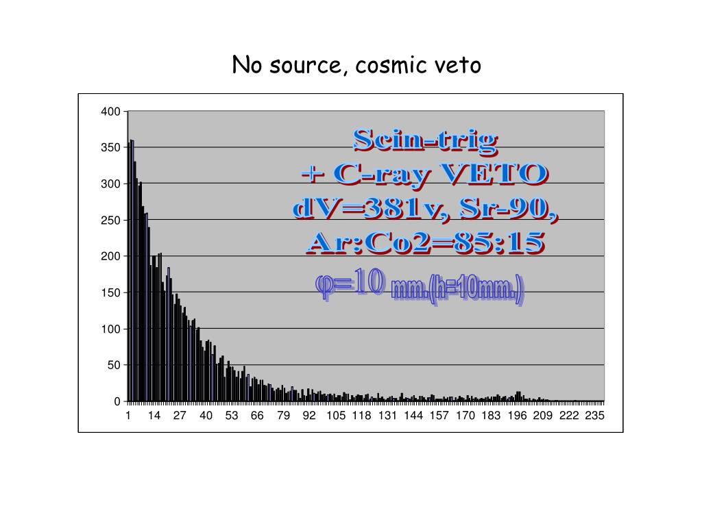 No source, cosmic veto Scin-trig + C-ray VETO dV=381v, Sr-90, Ar:Co2=85:15 j=10 mm.(h=10mm.)