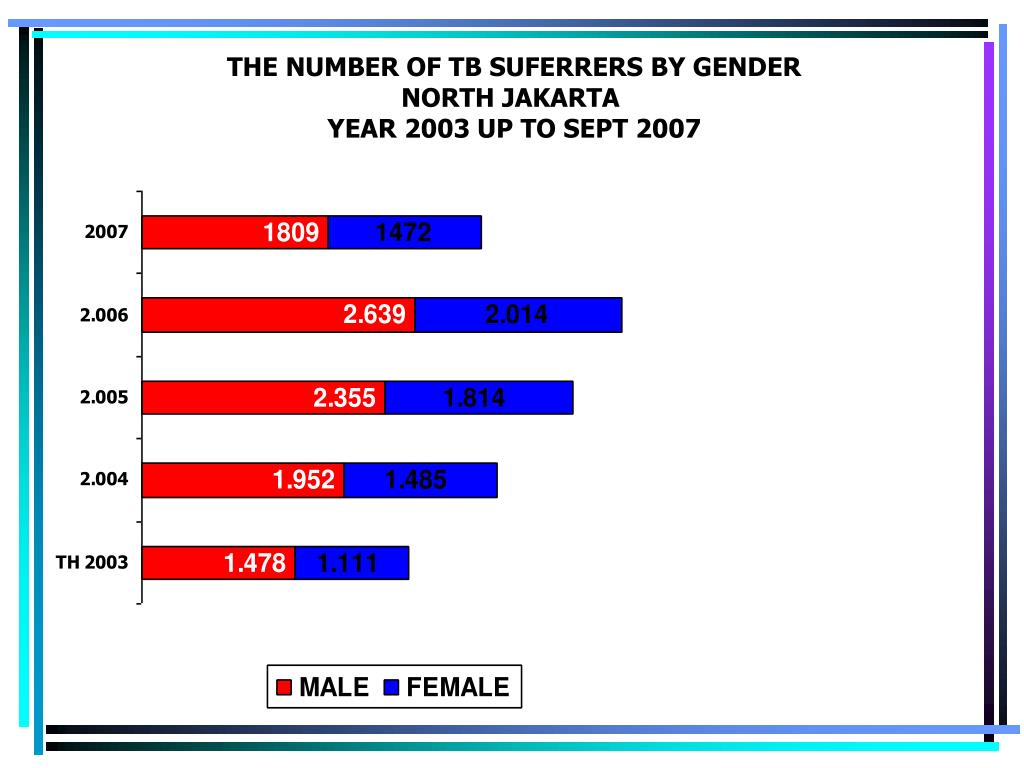 THE NUMBER OF TB SUFERRERS BY GENDER NORTH JAKARTA YEAR 2003 UP TO SEPT 2007