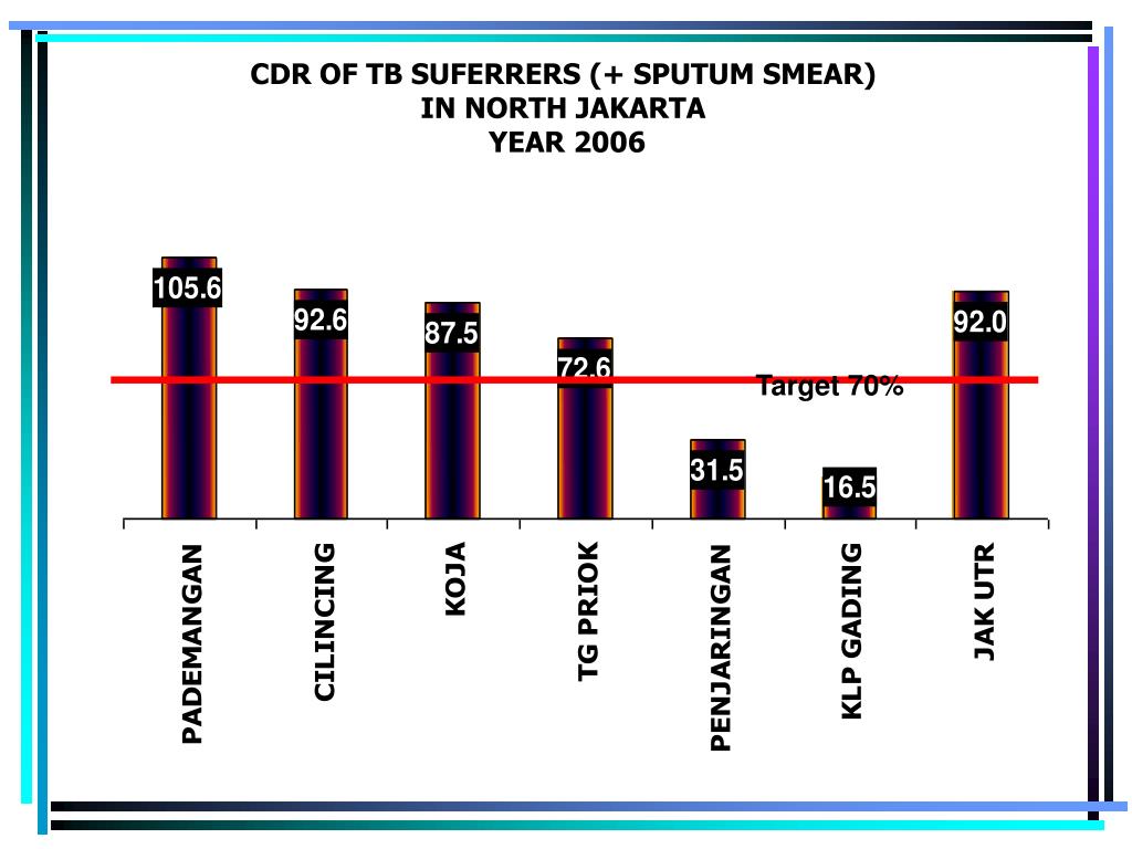 CDR OF TB SUFERRERS (+ SPUTUM SMEAR) IN NORTH JAKARTA YEAR 2006 Target 70%