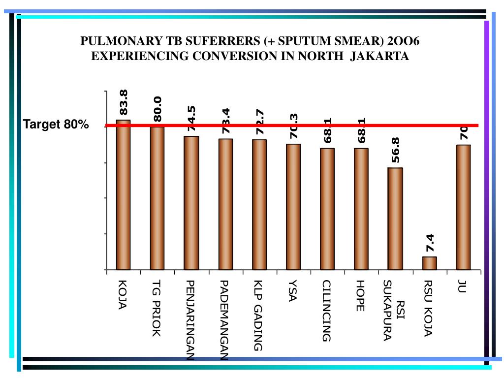 PULMONARY TB SUFERRERS (+ SPUTUM SMEAR) 2OO6 EXPERIENCING CONVERSION IN NORTH JAKARTA Target 80%