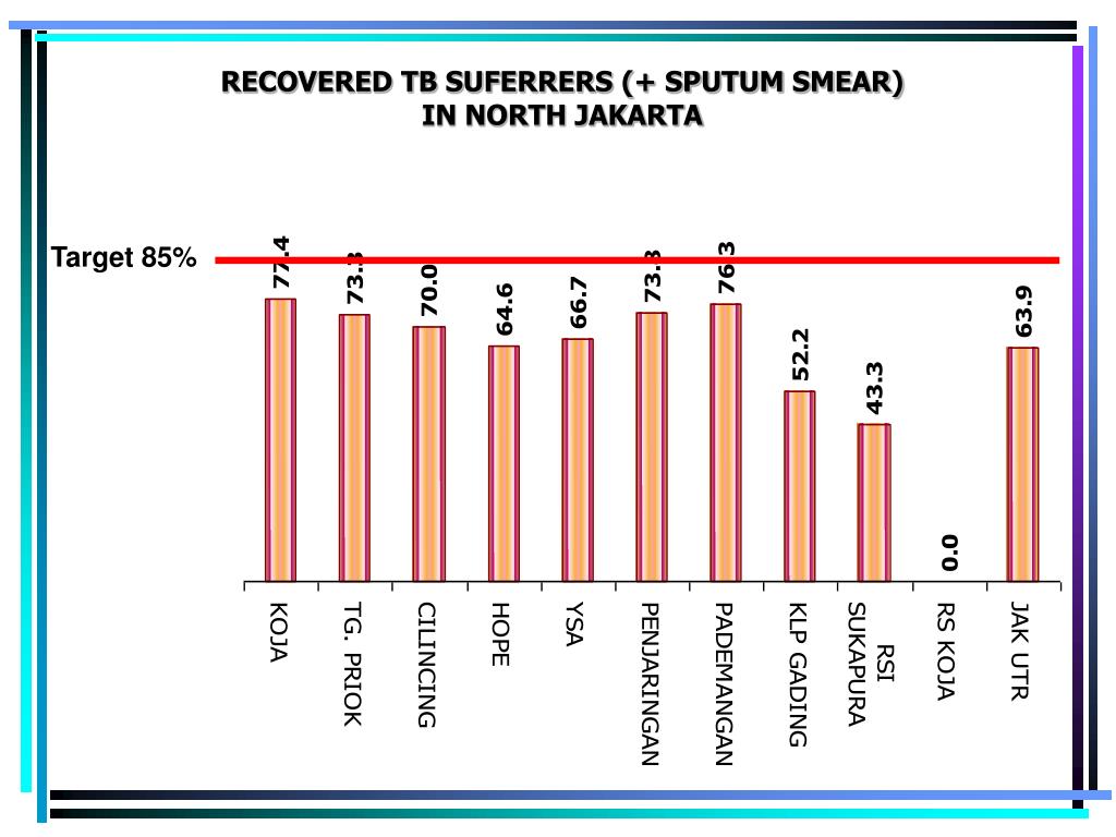 RECOVERED TB SUFERRERS (+ SPUTUM SMEAR) IN NORTH JAKARTA Target 85%