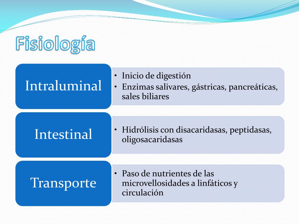 Etiología y patogenia • Enzimas • Mecanismos transportadores • Procesamiento intracelular • Resección Intestinal /lesiones • Extensión y localización • Obstrucción linfática