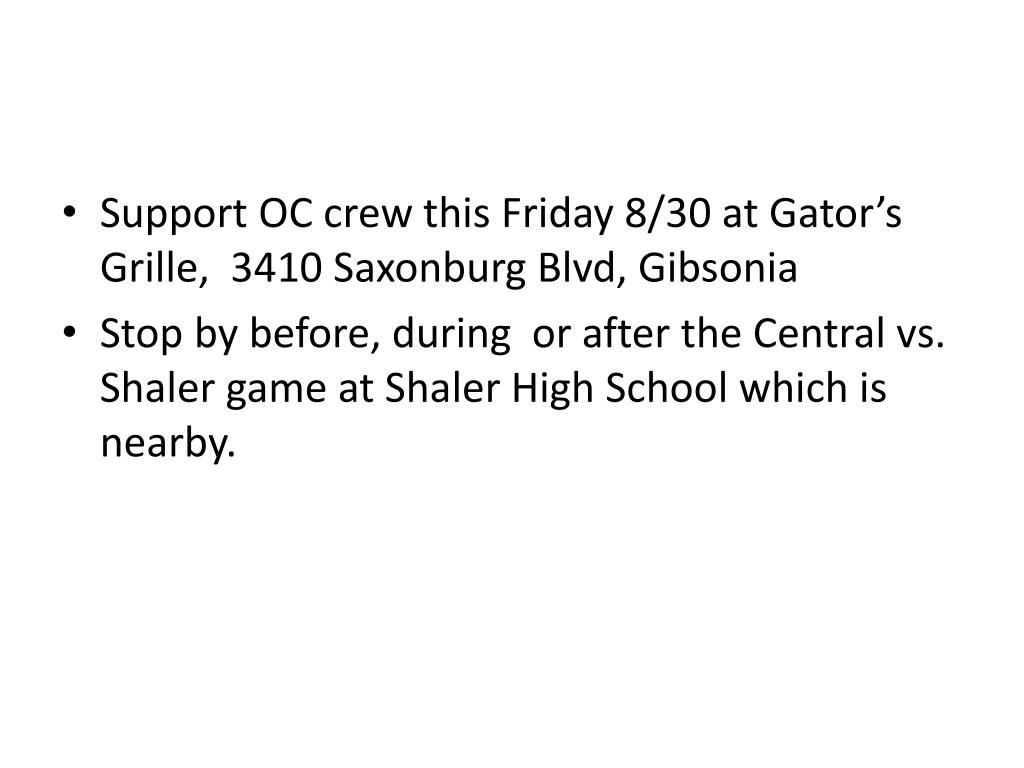 Support OC crew this Friday 8/30 at Gator’s Grille, 3410 Saxonburg Blvd, Gibsonia • Stop by before, during or after the Central vs. Shaler game at Shaler High School which is nearby.