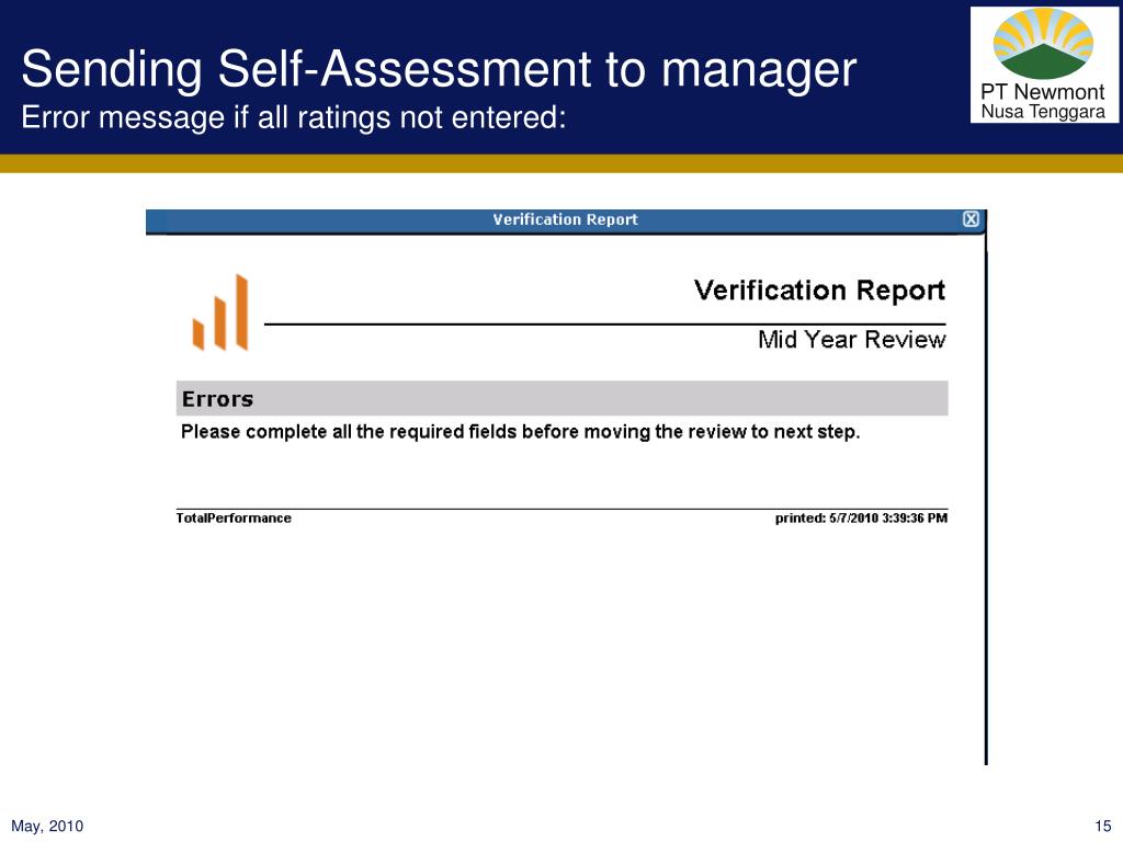 Sending Self-Assessment to managerError message if all ratings not entered: