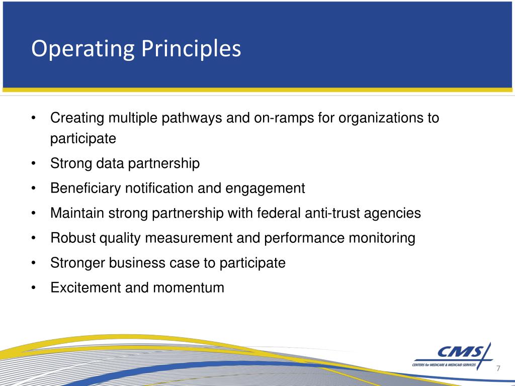 Operating Principles • Creating multiple pathways and on-ramps for organizations to participate • Strong data partnership • Beneficiary notification and engagement • Maintain strong partnership with federal anti-trust agencies • Robust quality measurement and performance monitoring • Stronger business case to participate • Excitement and momentum