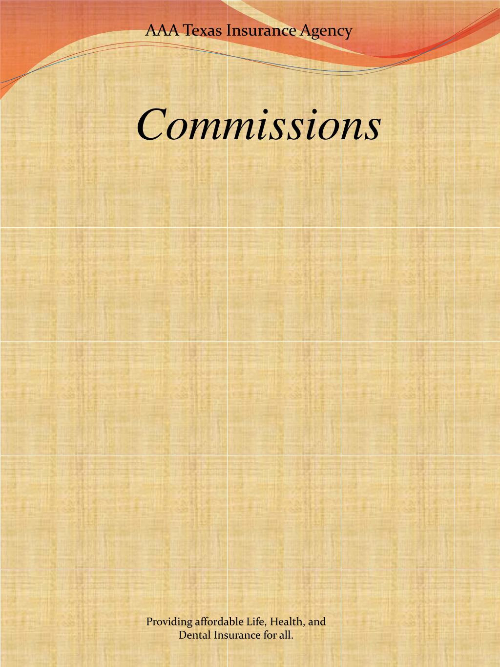 AAA Texas Insurance Agency Commissions Providing affordable Life, Health, andDental Insurance for all.