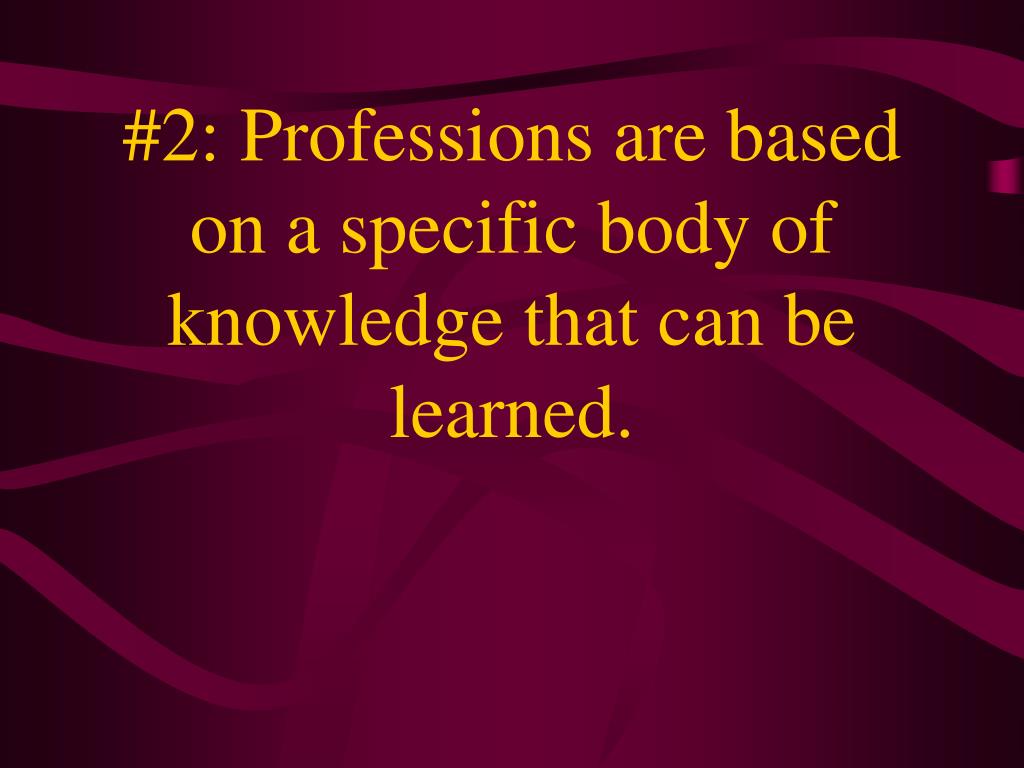 #2: Professions are based on a specific body of knowledge that can be learned.