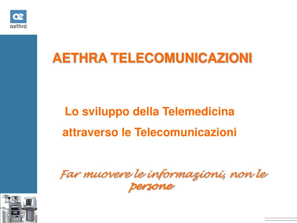 AETHRA TELECOMUNICAZIONI Lo sviluppo della Telemedicina attraverso le Telecomunicazioni Far muovere le informazioni, non le persone