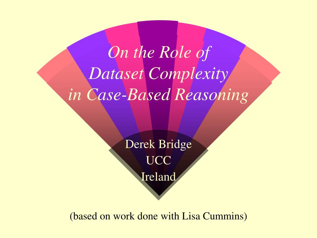 On the Role ofDataset Complexityin Case-Based Reasoning Derek Bridge UCC Ireland (based on work done with Lisa Cummins)