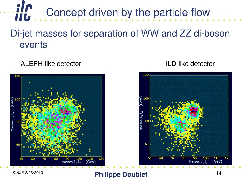 Concept driven by the particle flow Di-jet masses for separation of WW and ZZ di-boson events ALEPH-like detector ILD-like detector Philippe Doublet