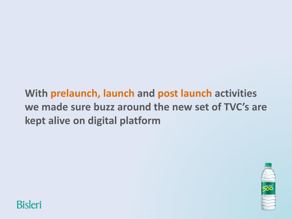 With prelaunch, launch and post launch activities we made sure buzz around the new set of TVC’s are kept alive on digital platform