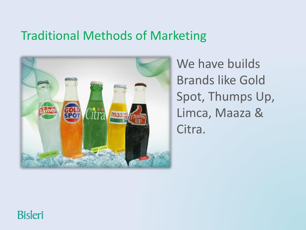 Traditional Methods of Marketing We have builds Brands like Gold Spot, Thumps Up, Limca, Maaza & Citra.