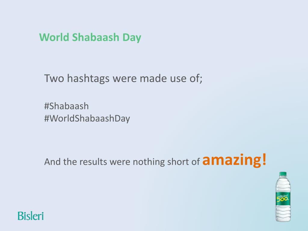 World Shabaash Day Two hashtags were made use of; #Shabaash #WorldShabaashDay And the results were nothing short of amazing!