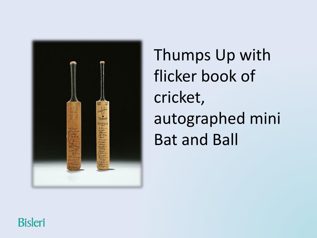 Thumps Up with flicker book of cricket, autographed mini Bat and Ball