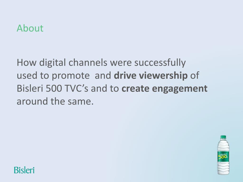 About How digital channels were successfully used to promote and drive viewership of Bisleri 500 TVC’s and to create engagement around the same.