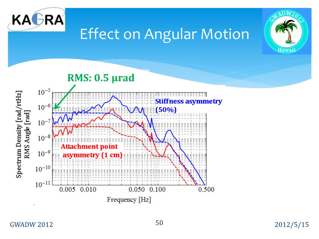 Effect on Angular Motion GWADW 2012 RMS: 0.5 μrad