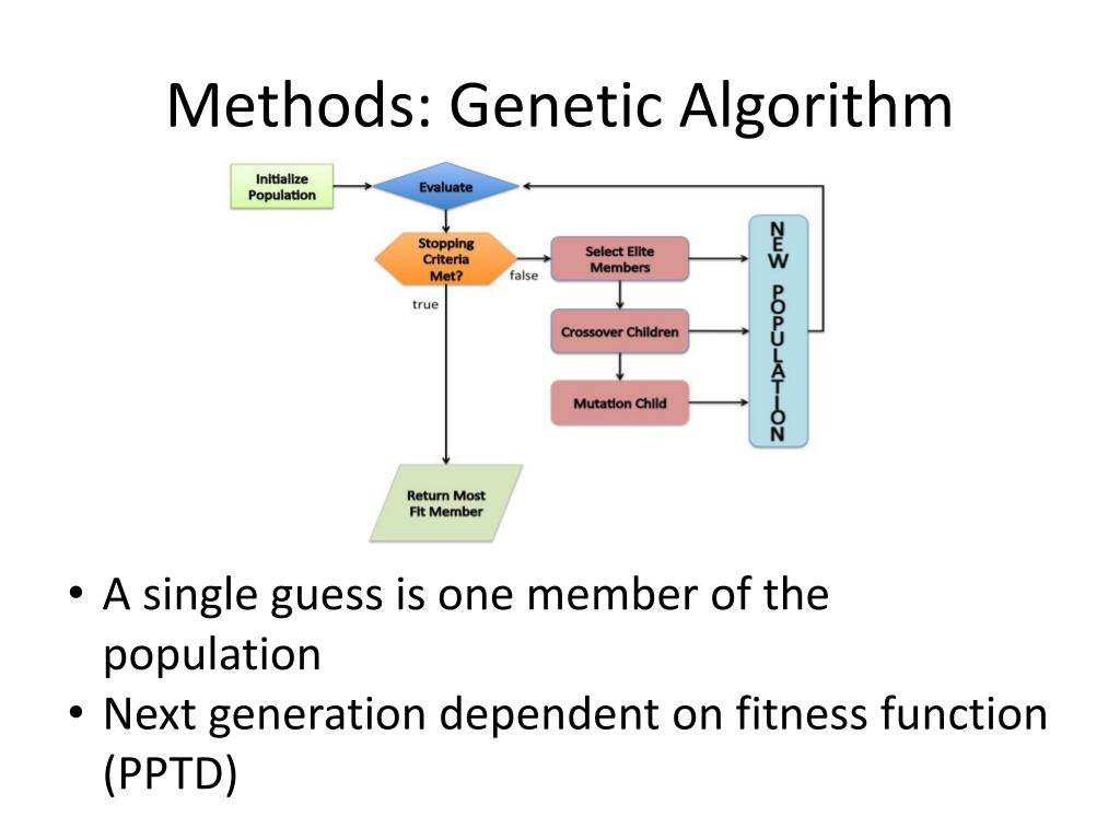 Methods: Genetic Algorithm • A single guess is one member of the population • Next generation dependent on fitness function (PPTD)