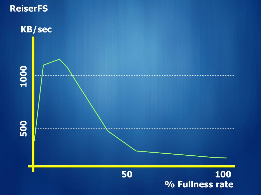 ReiserFS KB/sec 1000 500 50 100 % Fullness rate