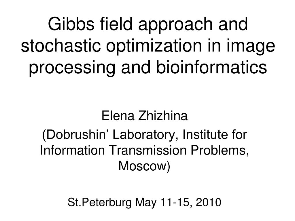 Gibbs field approach and stochastic optimization in image processing and bioinformatics Elena Zhizhina (Dobrushin’ Laboratory, Institute for Information Transmission Problems, Moscow) St.Peterburg May 11-15, 2010