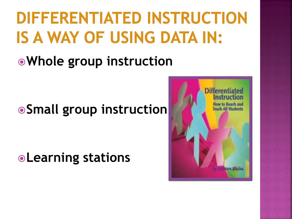 Differentiated instructionis a way of using data in: • Whole group instruction • Small group instruction • Learning stations