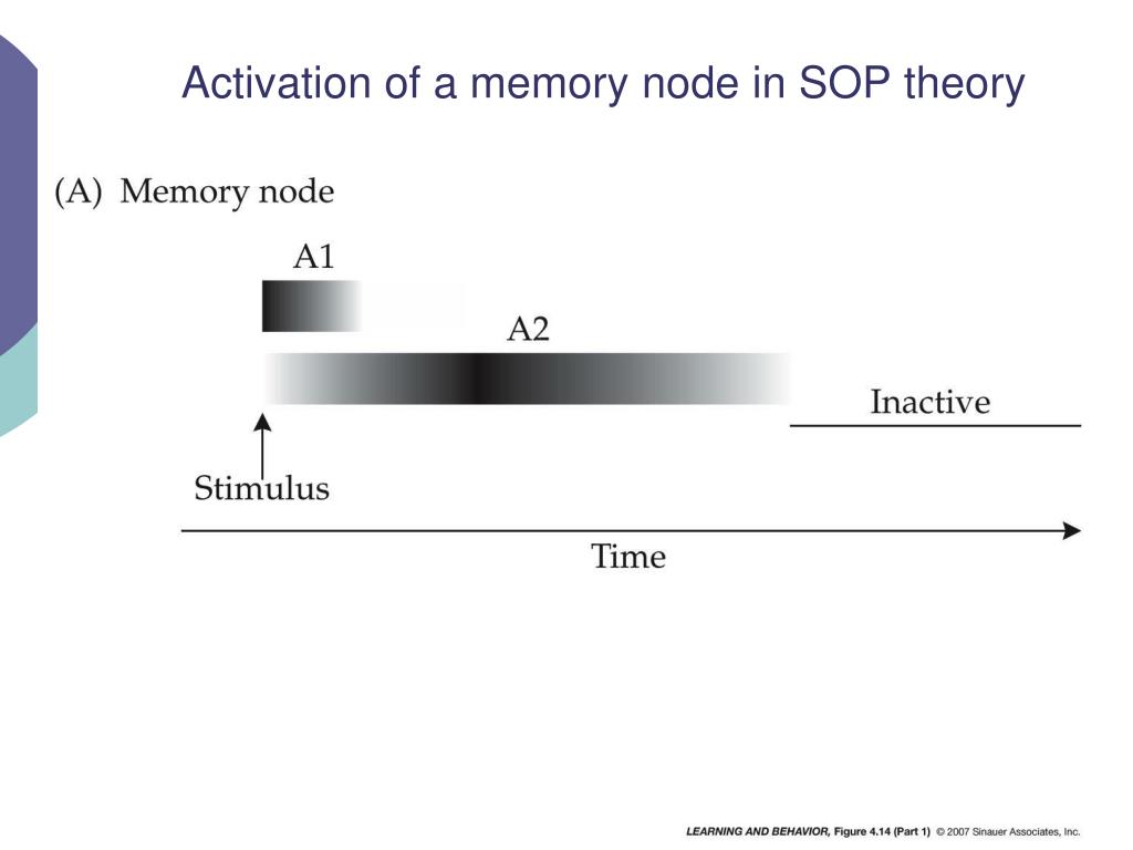 SOP Explains Timing Effects • None of the previous models explain why the timing of CS-US matters. • SOP model requires that both CS and UCS be in the A1 stage for learning to occur. • With delay more elements of CS decay from A1, becoming A2.