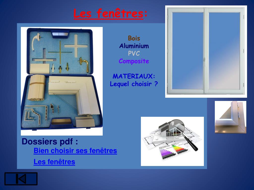 Les fenêtres: Bois Aluminium PVC Composite MATERIAUX: Lequel choisir ? Dossiers pdf : Bien choisir ses fenêtres Les fenêtres