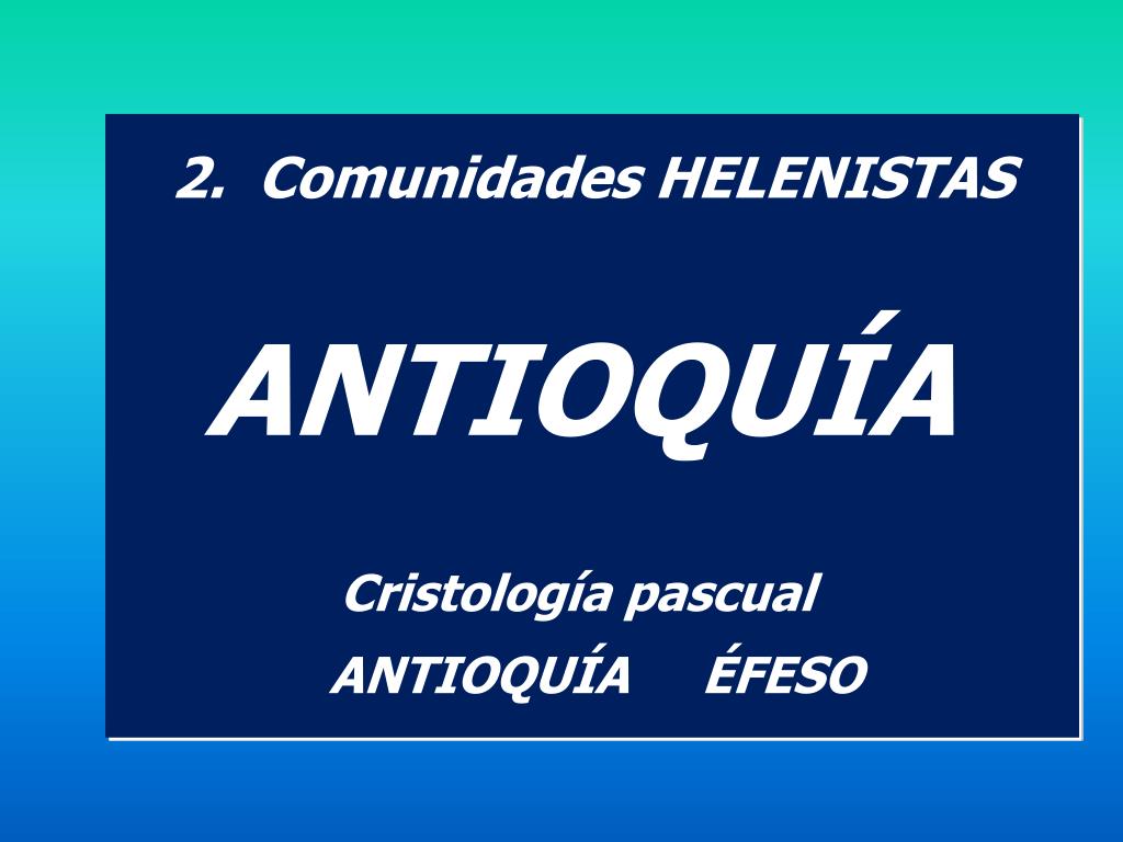2. Comunidades HELENISTAS • Reuniéndose en la sinagoga • Admitiendo paganos “prosélitos” • Menos rigurosas ante la Toráh • “Problema de las mesas” • Capacidad misionera • El “Evangelio de Esteban” • Cristología pascual • ANTIOQUÍA ÉFESO ANTIOQUÍA