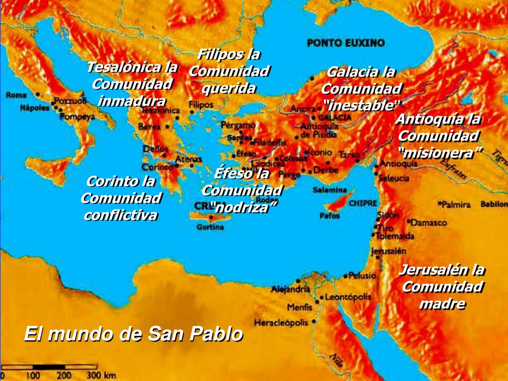 Filipos la Comunidad querida Tesalónica la Comunidad inmadura Galacia la Comunidad “inestable” Antioquía la Comunidad “misionera” Éfeso la Comunidad “nodriza” Corinto la Comunidad conflictiva Jerusalén la Comunidad madre El mundo de San Pablo