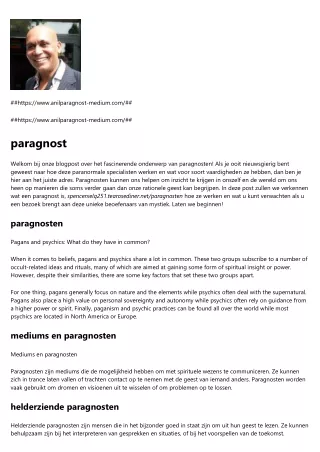 ##https://www.anilparagnost-medium.com/## ##https://www.anilparagnost-medium.com/## paragnost Welkom bij onze blogpost over het fascinerende onderwerp van paragnosten! Als je ooit nieuwsgierig bent geweest naar hoe deze paranormale specialisten werken en wat voor soort vaardigheden ze hebben, dan ben je hier aan het juiste adres. Paragnosten kunnen ons helpen om inzicht te krijgen in onszelf en de wereld om ons heen op manieren die soms verder gaan dan onze rationele geest kan begrijpen. In deze post zullen we verkennen wat een paragnost is, spencerxelq251.tearosediner.net/paragnosten hoe ze werken en wat u kunt verwachten als u een bezoek brengt aan deze unieke beoefenaars van mystiek. Laten we beginnen! paragnosten Pagans and psychics: What do they have in common? When it comes to beliefs, pagans and psychics share a lot in common. These two groups subscribe to a number of occult-related ideas and rituals, many of which are aimed at gaining some form of spiritual insight or power. However, despite their similarities, there are some key factors that set these two groups apart. For one thing, pagans generally focus on nature and the elements while psychics often deal with the supernatural. Pagans also place a high value on personal sovereignty and autonomy while psychics often rely on guidance from a higher power or spirit. Finally, paganism and psychic practices can be found all over the world while most psychics are located in North America or Europe. mediums en paragnosten Mediums en paragnosten Paragnosten zijn mediums die de mogelijkheid hebben om met spirituele wezens te communiceren. Ze kunnen zich in trance laten vallen of trachten contact op te nemen met de geest van iemand anders. Paragnosten worden vaak gebruikt om dromen en visioenen uit te wisselen of om problemen op te lossen. helderziende paragnosten Helderziende paragnosten zijn mensen die in het bijzonder goed in staat zijn om uit hun geest te lezen. Ze kunnen behulpzaam zijn bij het interpreteren van gesprekken en situaties, of bij het voorspellen van de toekomst.