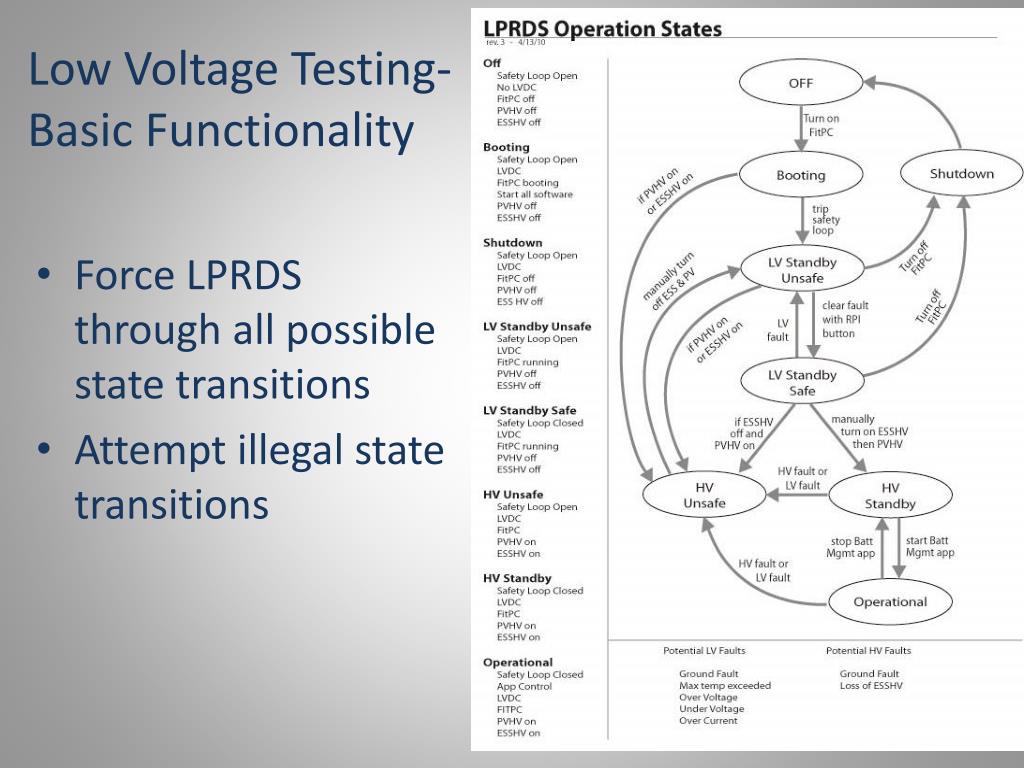 Low Voltage Testing-Basic Functionality • Force LPRDSthrough all possiblestate transitions • Attempt illegal statetransitions