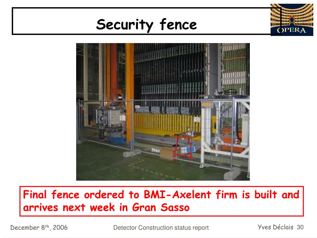Security fence Final fence ordered to BMI-Axelent firm is built and arrives next week in Gran Sasso Detector Construction status report