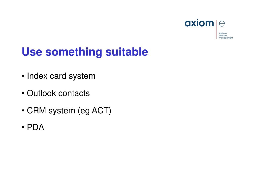 Use something suitable Index card system Outlook contacts CRM system (eg ACT) PDA