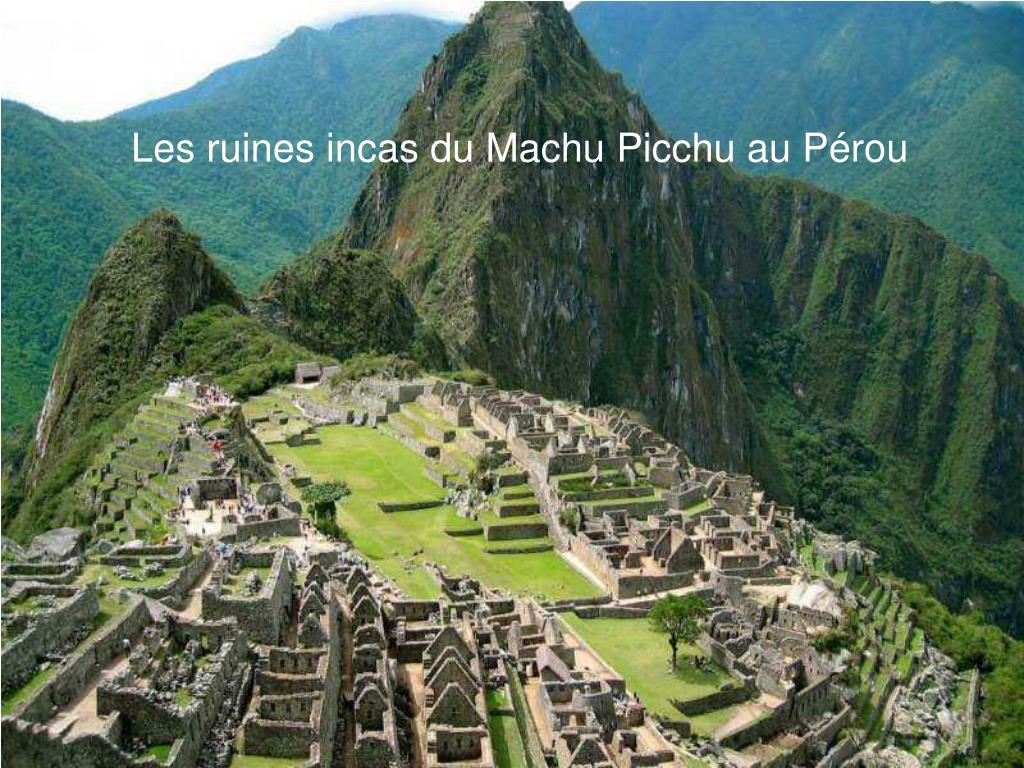 Les ruines incas du Machu Picchu au Pérou Perchée entre deux montagnes de la Cordillère des Andes à 2.438 mètres, la citadelle de Machu Picchu, principale attraction touristique du Pérou, fut construite au XVe siècle sous l'empereur inca, Pachacutec. Machu Picchu servait de centre culturel et religieux aussi bien que d'observatoire d'astronomie. Plus de 2.000 touristes visitent quotidiennement l'ancien sanctuaire déclaré patrimoine historique de l'humanité par l'UNESCO en 1983.