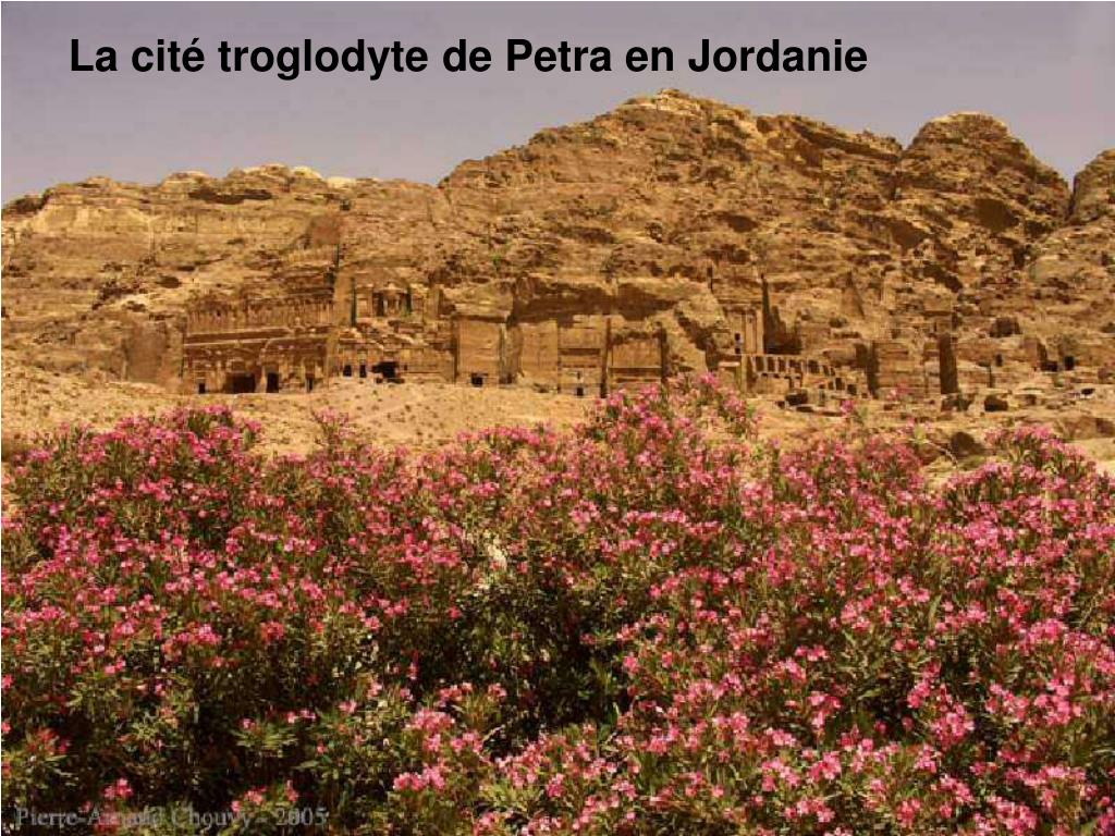 La cité troglodyte de Petra en Jordanie À environ 200 kilomètres au sud d'Amman, la capitale de la Jordanie, se dresse la «cité rose» de Petra, patrimoine mondial de l'Unesco. Les nombreux temples, monastères, thermes et tombes qui composent ce site sont directement taillées dans la roche.