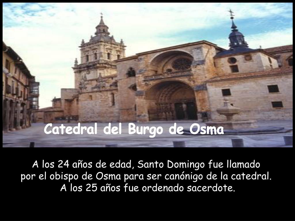 Catedral del Burgo de Osma A los 24 años de edad, Santo Domingo fue llamado por el obispo de Osma para ser canónigo de la catedral. A los 25 años fue ordenado sacerdote.