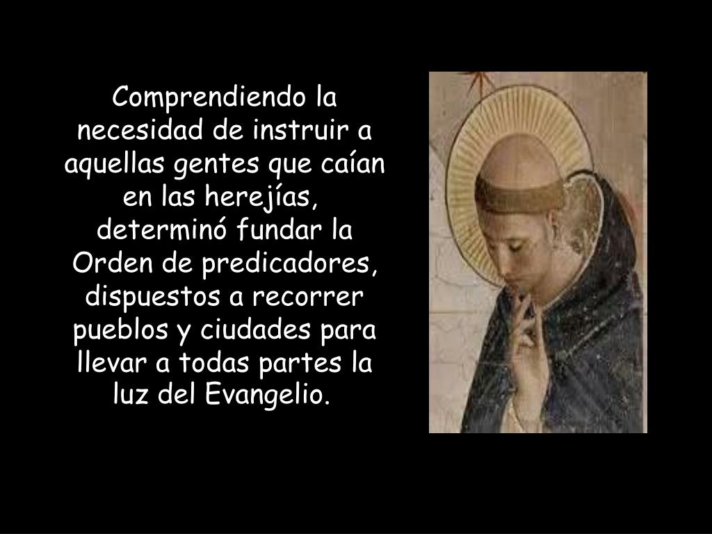 Comprendiendo la necesidad de instruir a aquellas gentes que caían en las herejías, determinó fundar la Orden de predicadores, dispuestos a recorrer pueblos y ciudades para llevar a todas partes la luz del Evangelio.