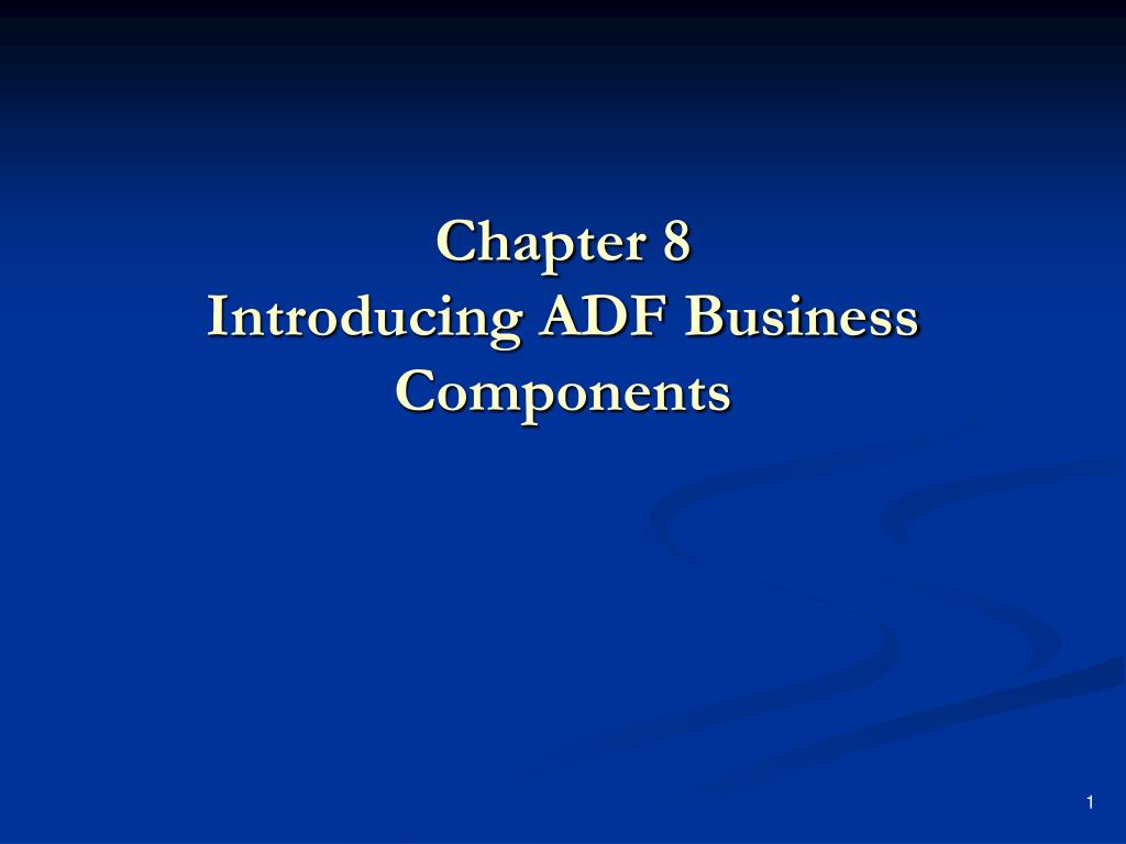 Chapter 8 Introducing ADF Business Components. Introducing ADF Business Components. ADF BC is a Java and XML based framework for developing: Business logic, including validation and default logic Queries Transaction handling Data access